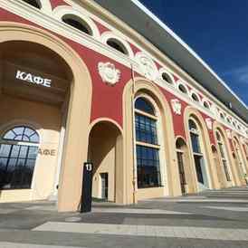 Дизайн кафе выполнен в спортивной тематике, что гармонично подчеркивает его расположение на территории стадиона. Стены оформлены в стиле беговых легкоатлетических дорожек, создавая динамичную атмосферу. Элементы спортивной атрибутики украшают зал, добавляя оригинальности и подчеркивая связь с миром спорта. Этот стильный и энергичный интерьер делает «Легенду» местом, которое запоминается с первого посещения.